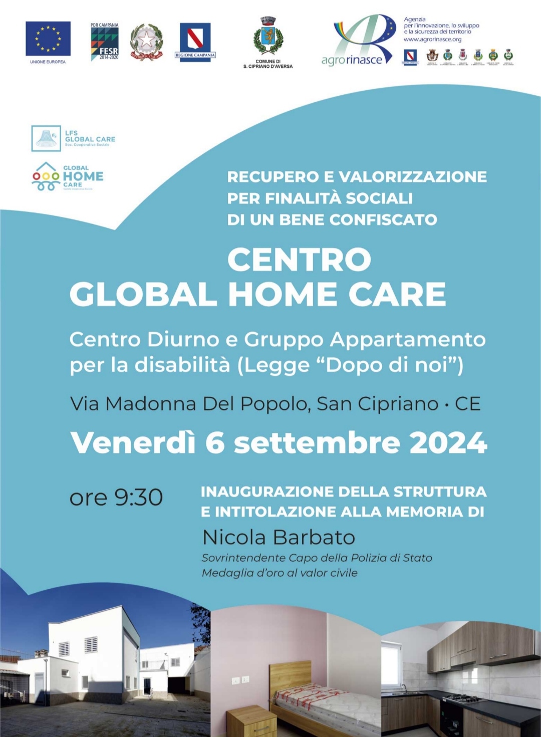 San Cipriano d’Aversa (CE)- Venerdì 6 settembre 2024 alle ore 9:30 si terrà l’inaugurazione del bene confiscato denominato “Dopo di noi. Accoglienza e integrazione per la disabilità” in via Madonna del Popolo, San Cipriano d’Aversa e l’intitolazione dello stesso al Sovrintendente Capo della Polizia di Stato Nicola Barbato, medaglia d’oro al valore civile.