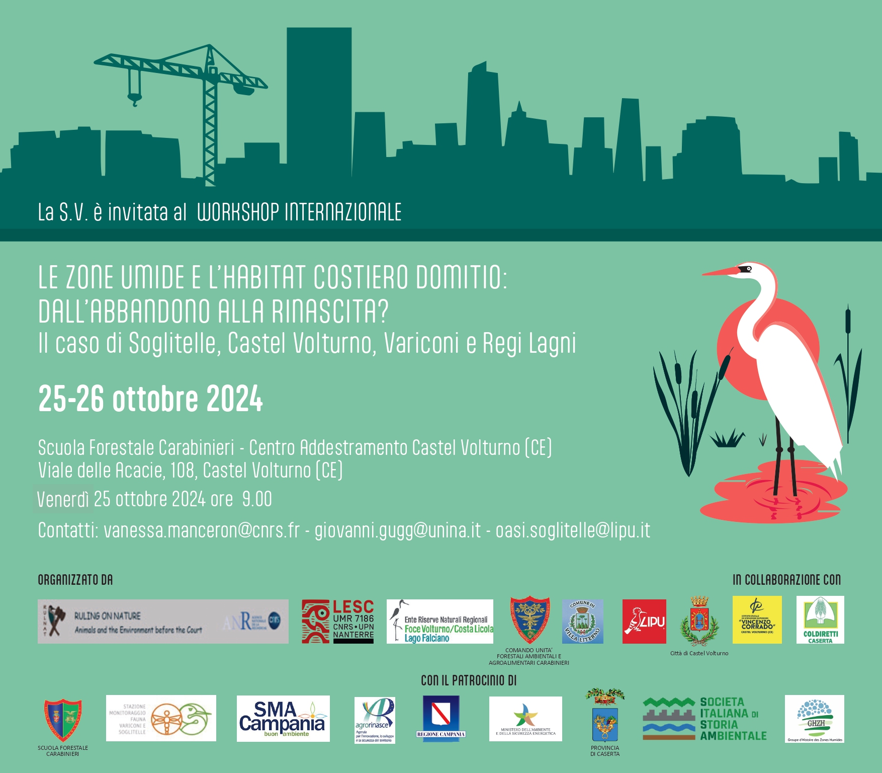 Castel Volturno- Siamo di fronte ad una possibile rinascita dell’area del litorale domitio? Se ne parlerà il 25 e 26 ottobre 2024, al workshop internazionale “Le zone umide e l’habitat costiero domitio: dall’abbandono alla rinascita?” presso il Centro Addestramento di Castel Volturno (CE) dell’Arma dei Carabinieri.